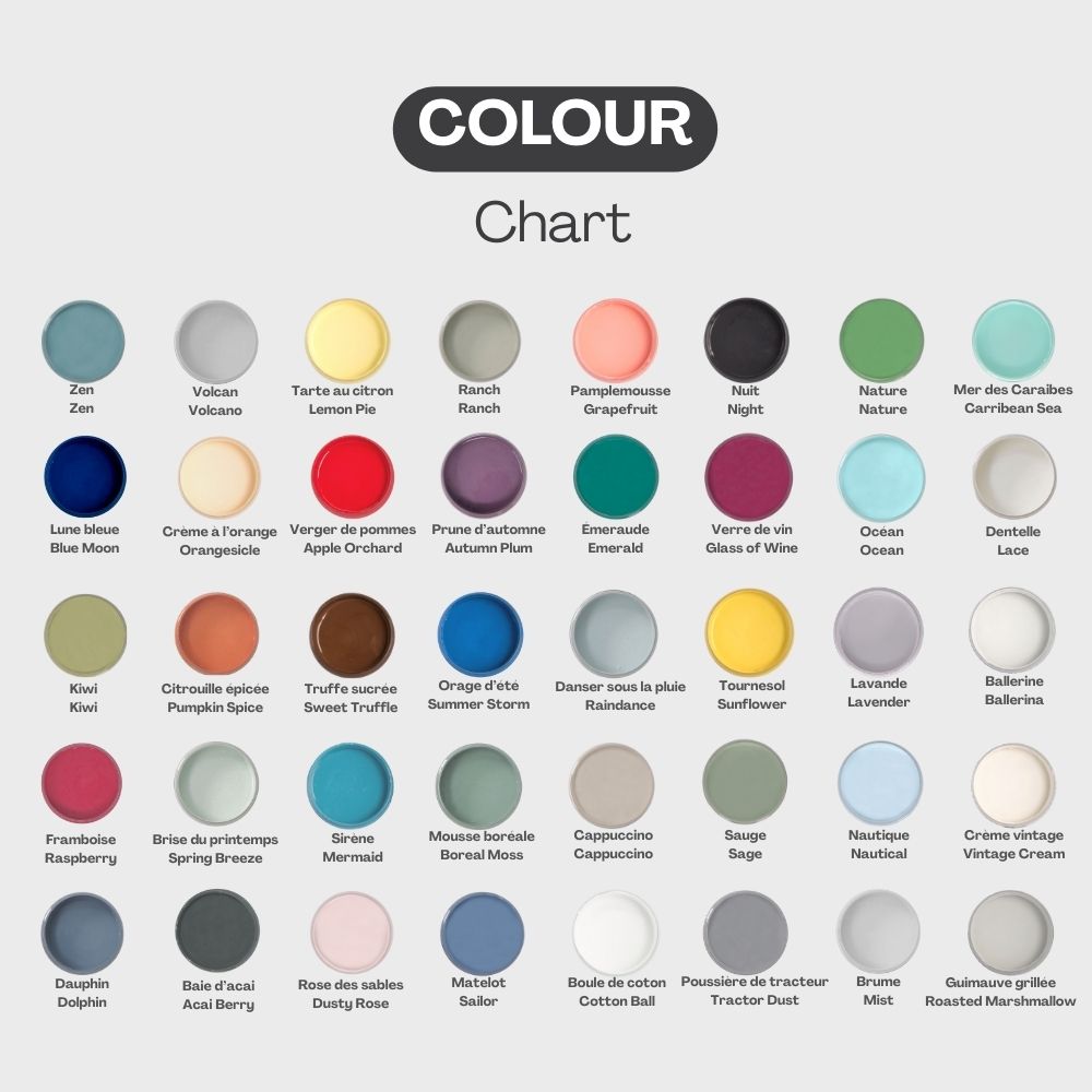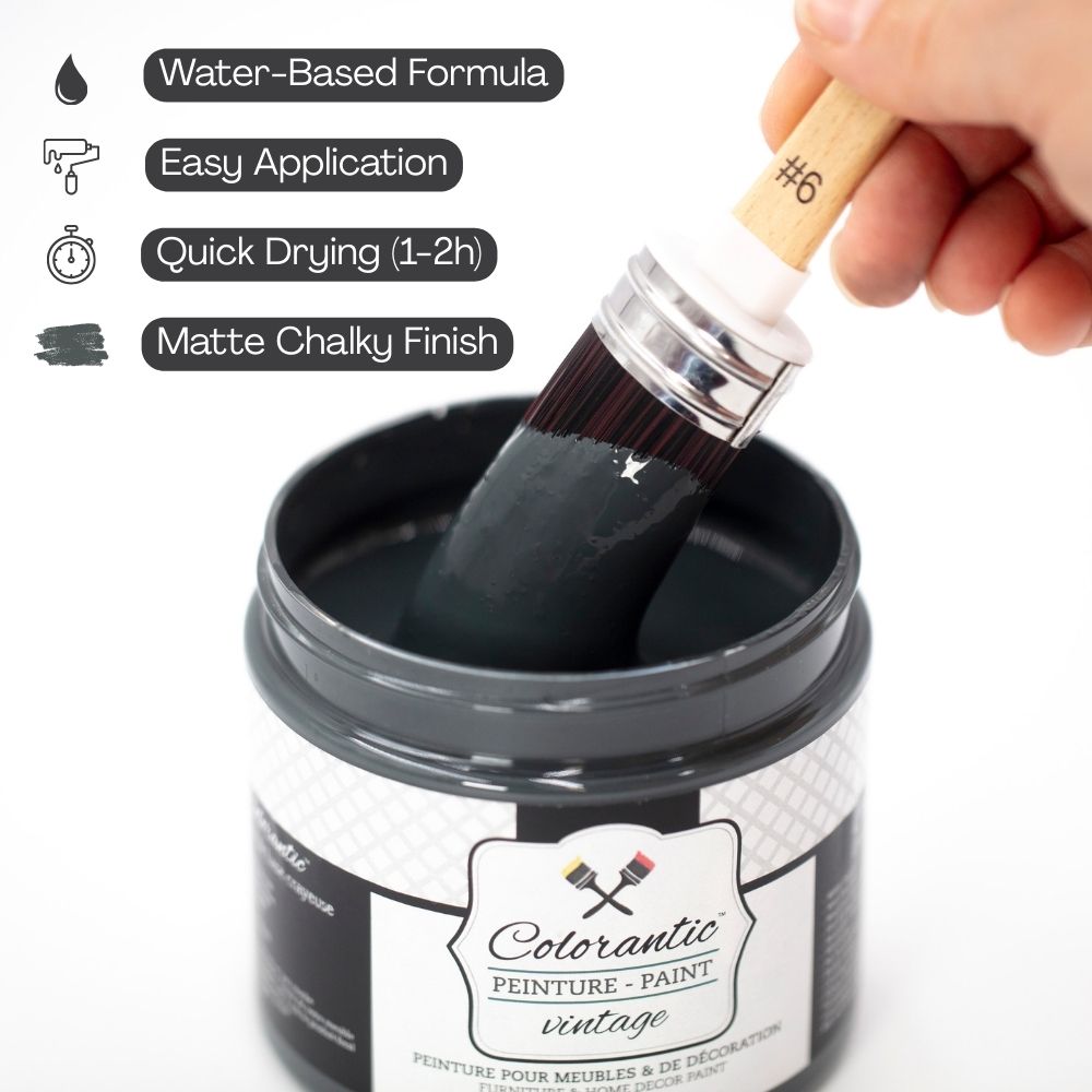 Colorantic chalk-based paints are environmentally friendly. In fact, instead of using conventional metal cans, as many paint companies do, we decided to pour our products into plastic containers with white lids to extend the life of our paints. In addition to being environmentally friendly, our chalk-based colours have a smooth, velvety texture.