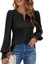 Unique Metal Clasp: long sleeve shirt women with metal clasp offers a stylish and chic look. You can hook it to make a round neck with a keyhole or unhook it to make a sexy v-neck.